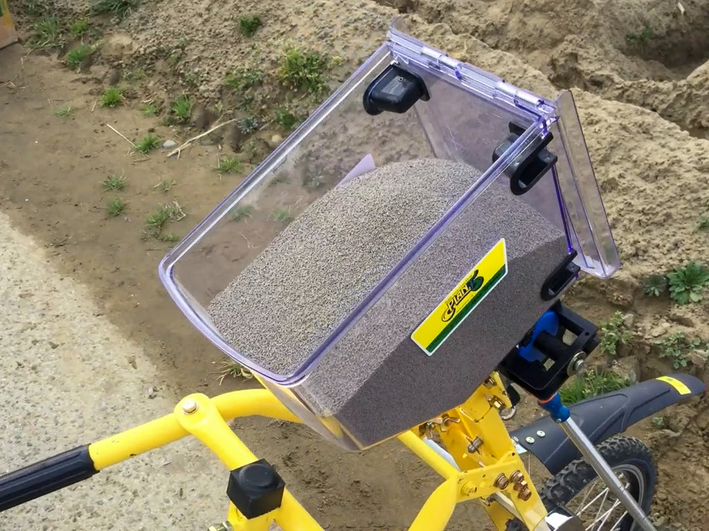 Ein Trichter und eine Säwalze lassen sich mit einem Schnellspannhebel einfach lösen und befestigen. Ein Kupplungslager verhindert, dass beim Rückwärtsfahren der Sämaschine Saatgut herunterfällt.